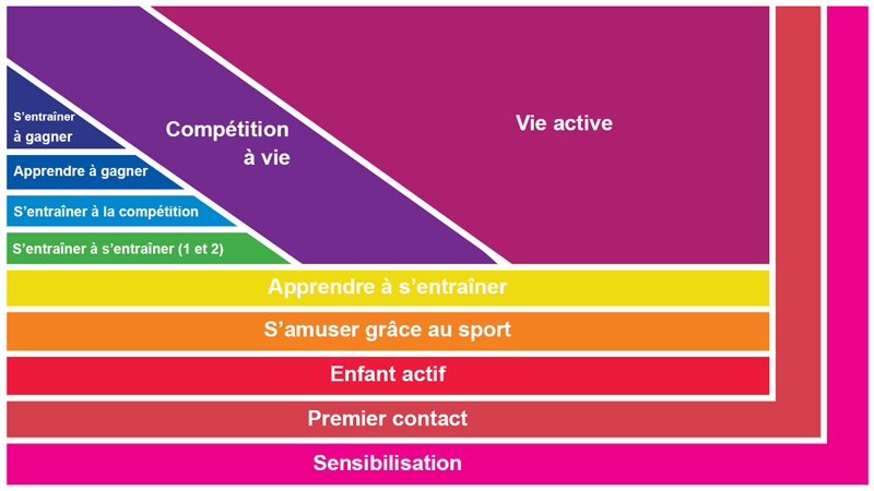Le modèle de développement de l’athlète de basketball en fauteuil roulant est une adaptation de l’approche de DLTA décrite par Au Canada, le sport c’est pour la vie (ACSV). Le DLTA est fondé sur la reconnaissance qu’une meilleure performance sportive et une nation active sont des résultats d’un parcours de développement bien défini de l’athlète.