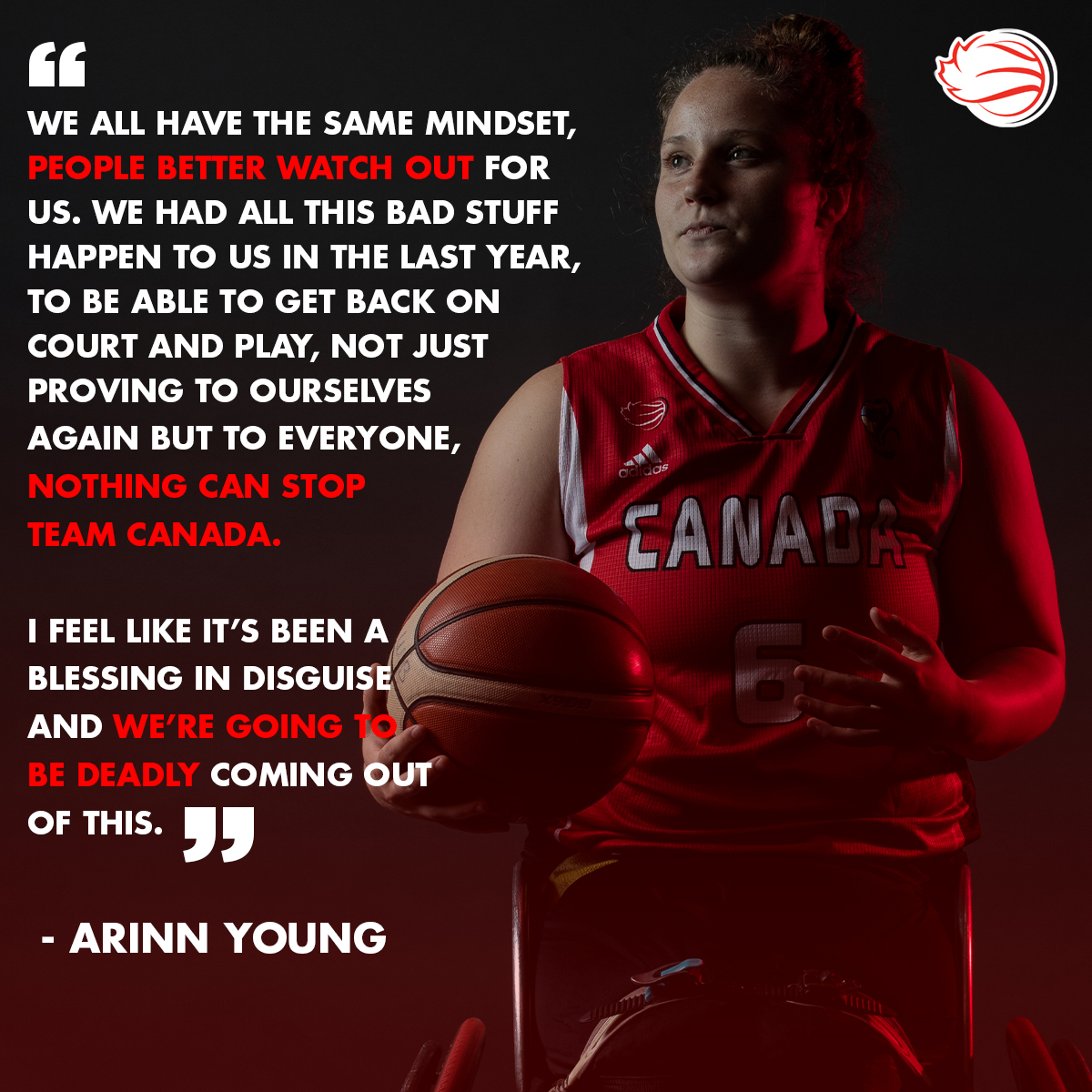 “We all have the same mindset, people better watch out for us,” said the 24-year-old. “We had all this bad stuff happen to us in the last year, to be able to get back on court and play, not just proving to ourselves again but to everyone, nothing can stop Team Canada. Nothing can stop the athletes who have been through a nightmare. It just makes us hungrier.